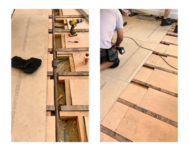 Tying the existing joists together, with an 18 mm plywood sub-deck.